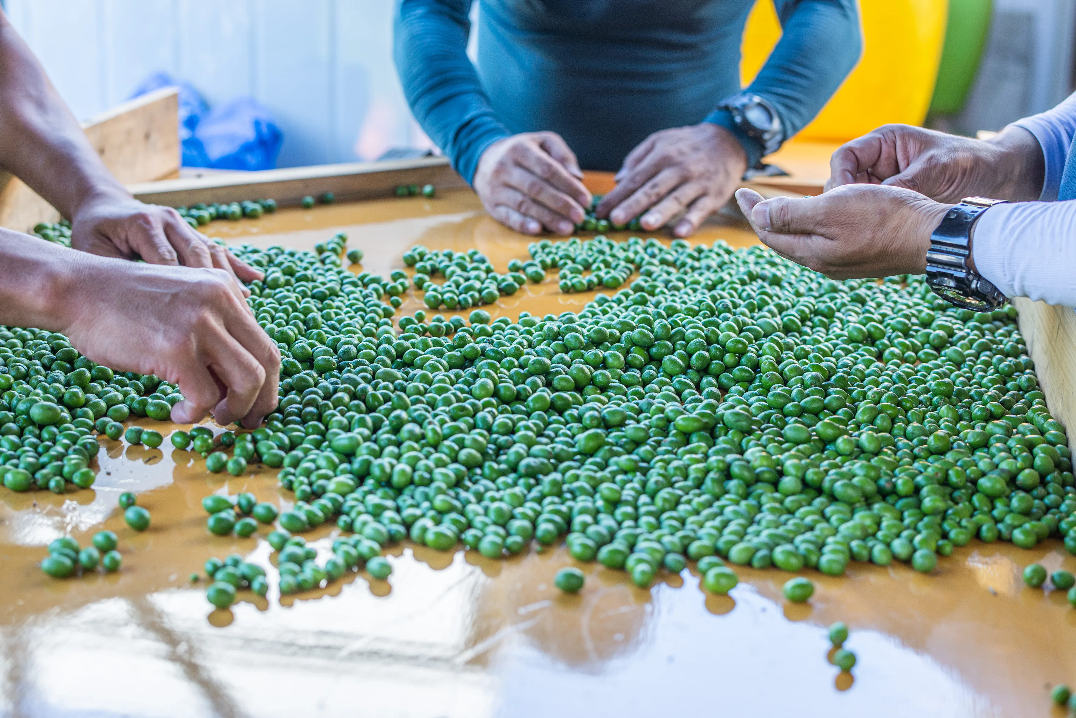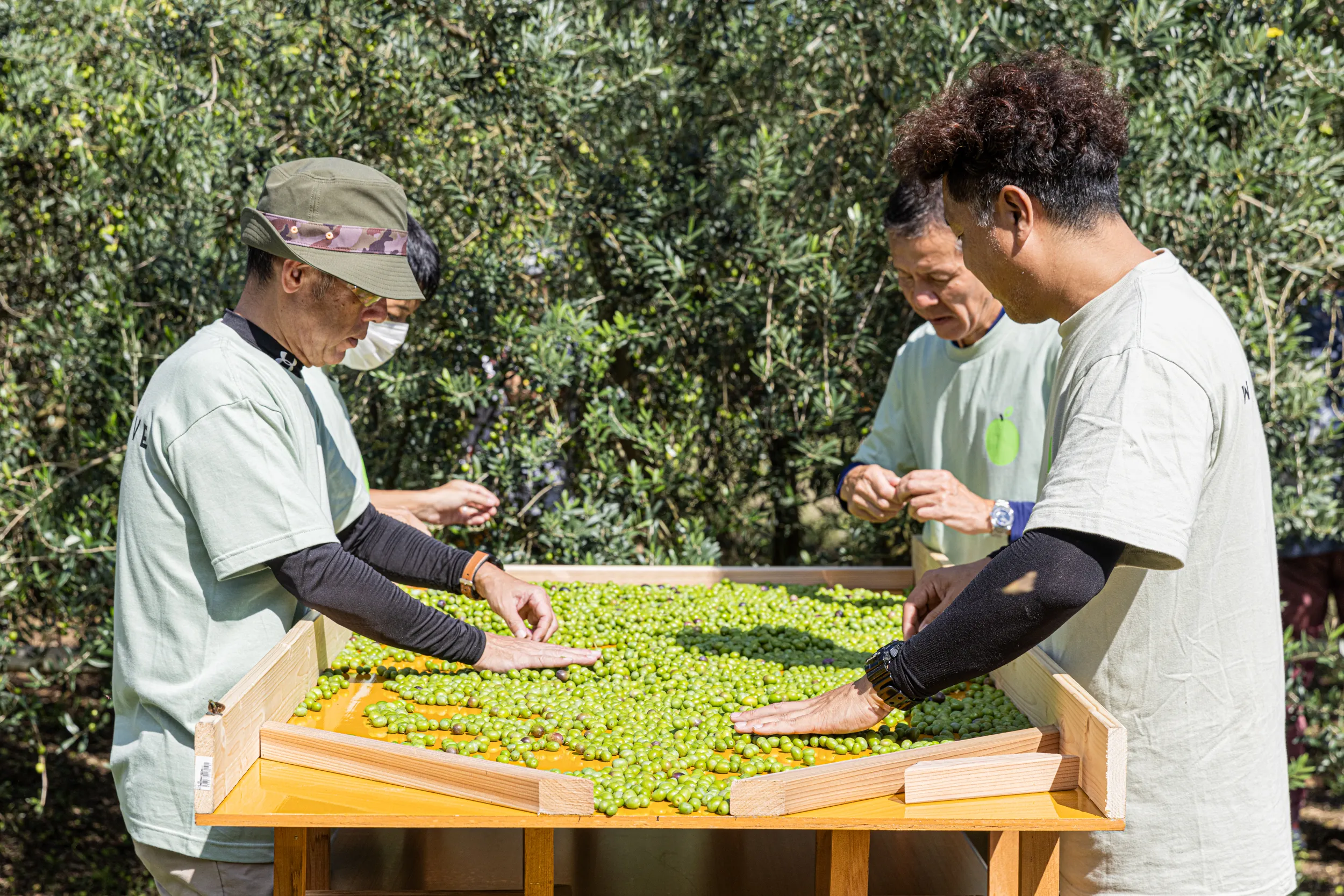 オリーブの選果作業は