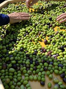 ランチタイムの間、先ほど収穫したオリーブの搾油が行われました。