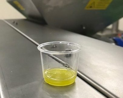 共同研究農家分の約35㎏と合わせて搾油し、まさにオリーブグリーン色の100%伊豆産のオリーブオイルが誕生いたしました