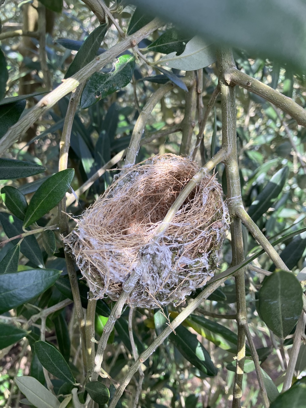 片瀬圃場で作業中には、オリーブの木の中に鳥の巣も発見!