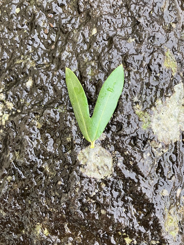 オリーブ冠作りの作業中、ハートの葉ならぬ、今年の干支であるウサギのオリーブの葉を発見!