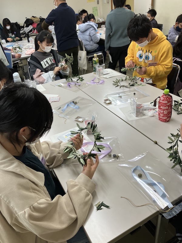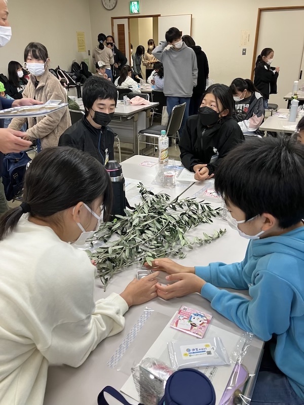 昨日、伊東市の小学生ふるさと教室『オリーブリースづくり体験』が開催されました。
