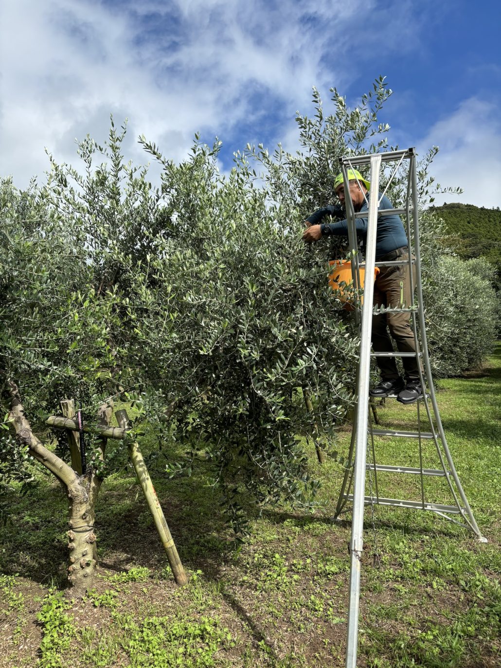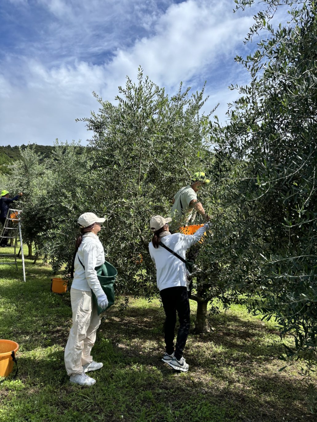 今年も実ってくれたオリーブに感謝しながら、手摘みで収穫作業を行います