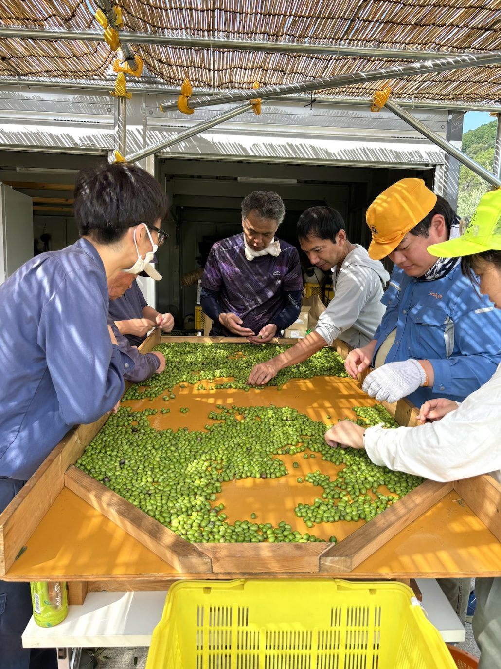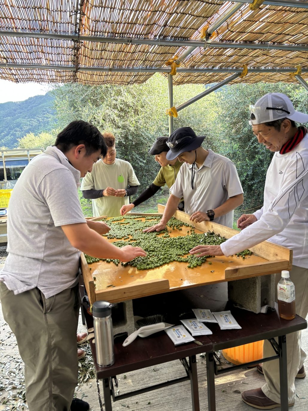 選果が終わったオリーブは、このあと伊豆高原の搾油所に運ばれ、オリーブオイルの搾油作業へと移ります。