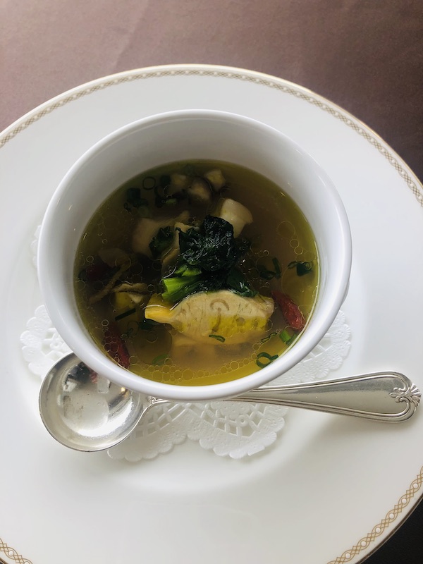 ③「ビーナス貝とあおさ海苔のスープ カモミール風味」