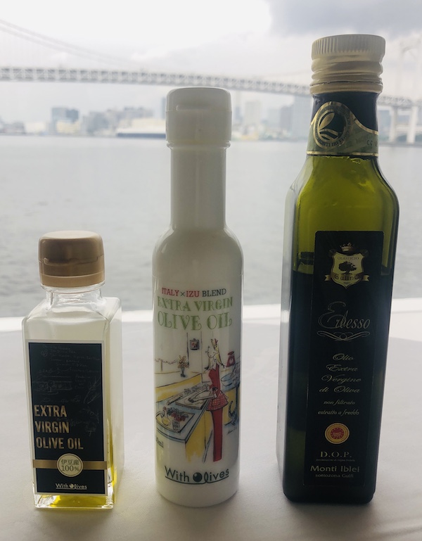 お料理に使われたWith Olivesのオリーブオイル3種類はこちら(東京湾海上デビュー♪)