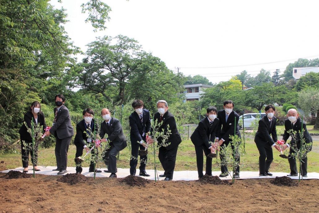 令和4年度の入社記念のオリーブ植樹式が、5月20日に伊豆高原のオリーブ搾油場にて行われました。