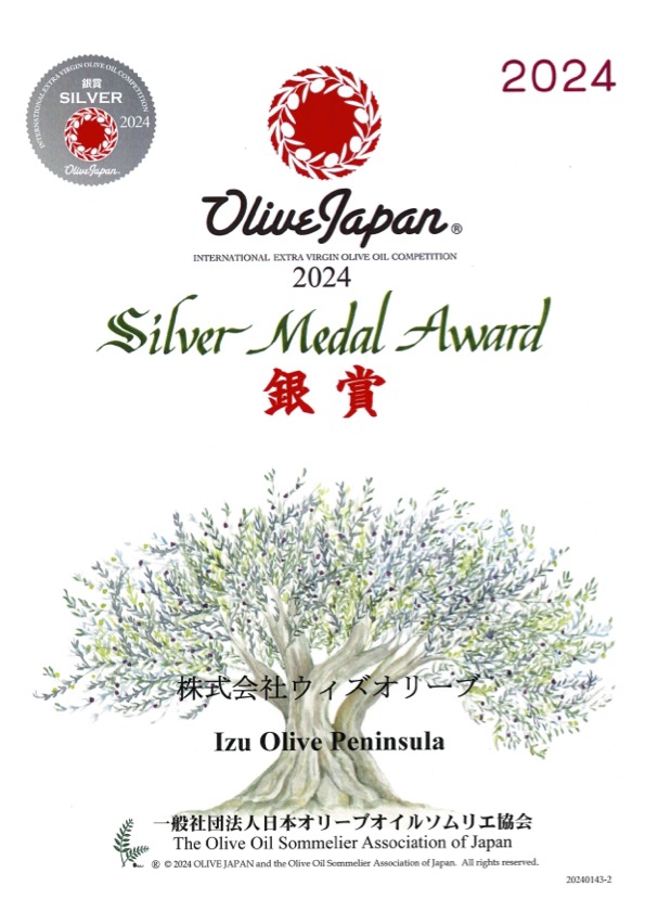 また、伊豆産の3品種(アスコラーナ、レッチーノ、レッチョ・デル・コルノ)をブレンドした少量生産EXV.オリーブオイル『伊豆オリーブペニンシュラ』も、同コンテストにて銀賞を受賞しました