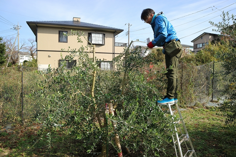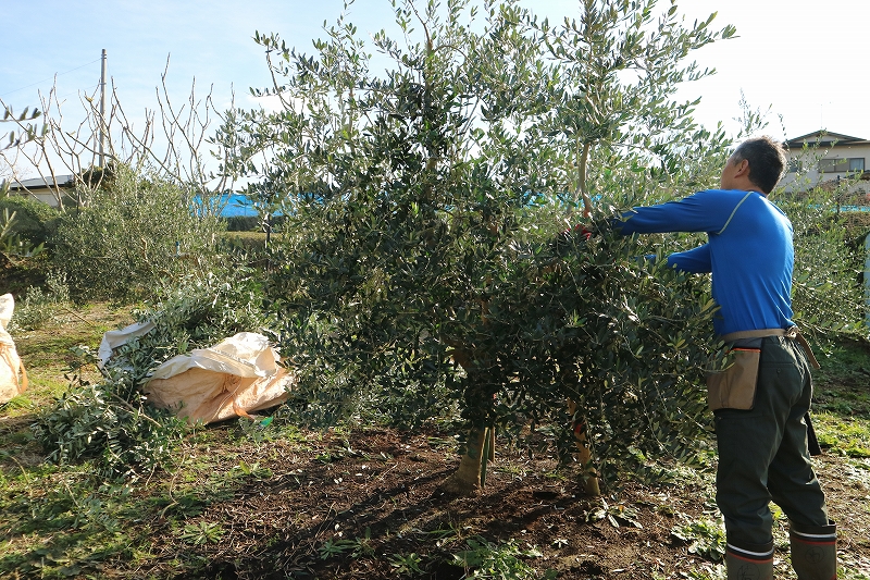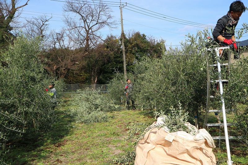 撮影した日は、お天気に恵まれ、約20本のオリーブの剪定を行いました