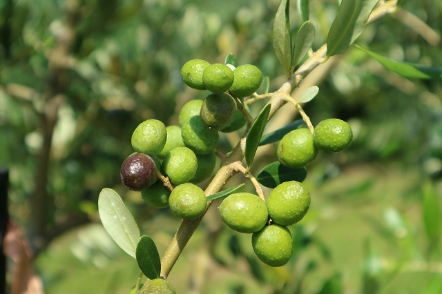 オリーブの葉の緑色の中に、果実の赤色が溶け込む様子は、収穫の終わりが近づいている事を知らせているようでした。