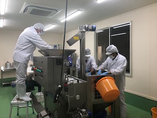 下の写真は、搾油作業中のスタッフの様子です。