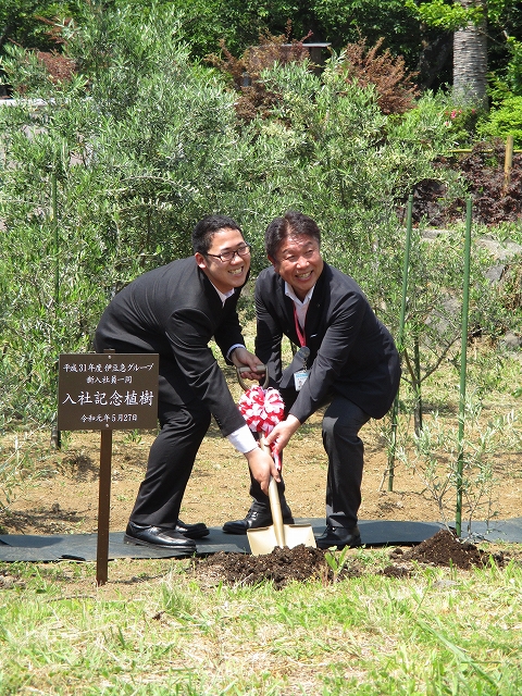 本日、入社記念のオリーブの植樹式が、伊豆高原オリーブ搾油工場にて行われました。