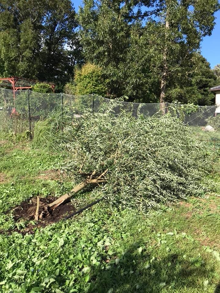 台風の風はとても強く、たくさんのオリーブが倒れてしまいました。