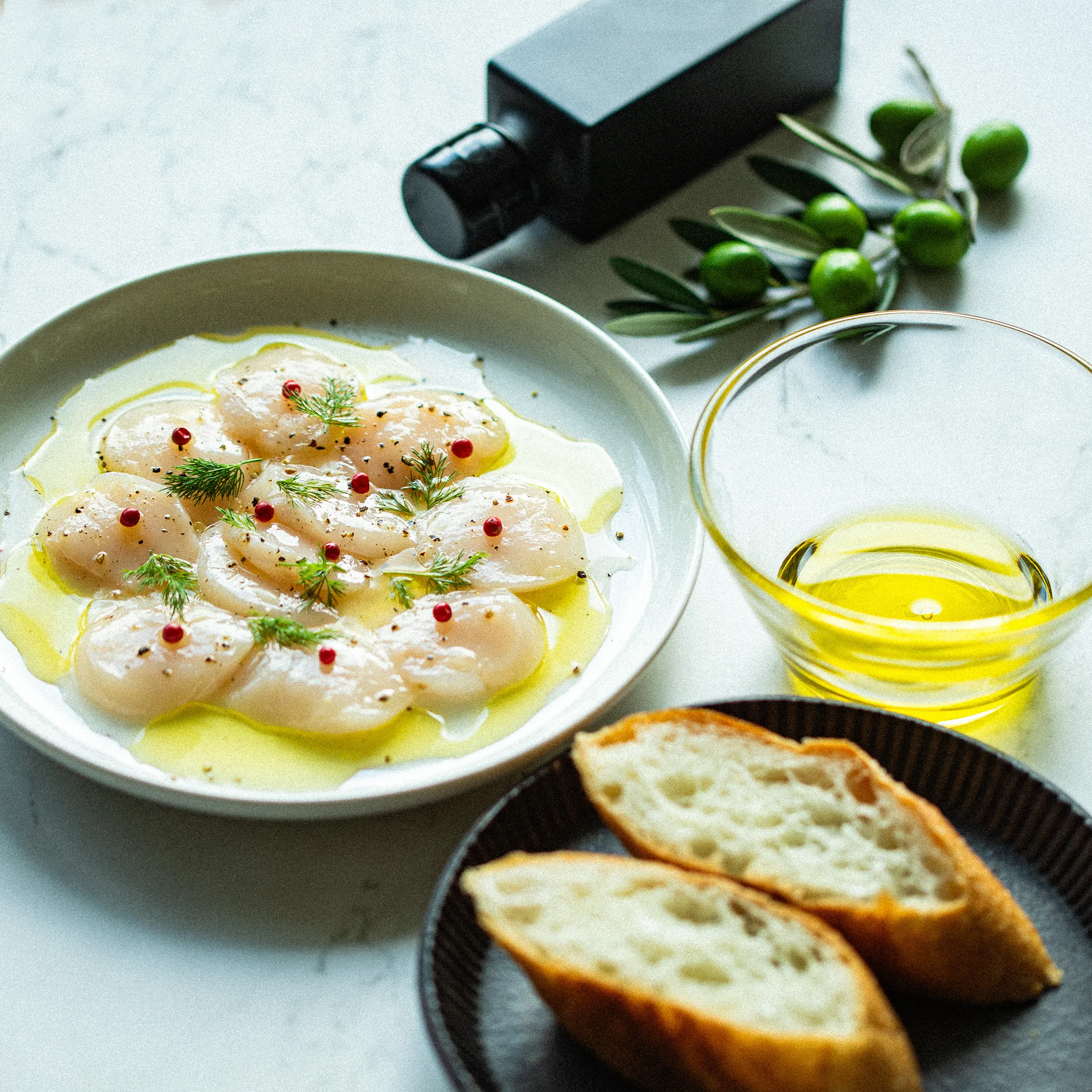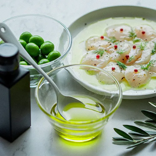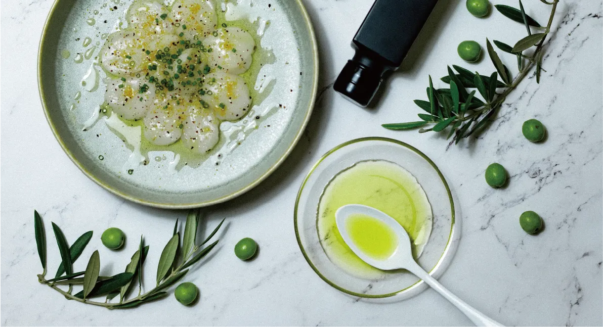 当店でも使用しているエキストラバージンオリーブオイルは、すっきりとした軽やかな味わいと奥深さ、そして美しく洗練された色合いが多くのゲストの関心を集めております。特にパンとの相性は抜群で料理全体の調和を崩すことなく引き立てるその品質は、私どもの自慢とも言えます。ゲストとのコミュニケーションの契機となり、引いては次回のご予約にもつながり、私どものサービスの向上に置いても欠かせない存在となりつつあります。地元産素材へのこだわりを体現する商品として、今後とも大切に使用させていただきます。 -