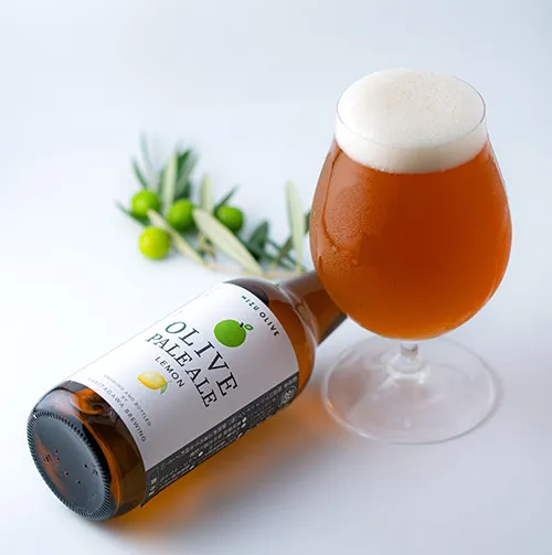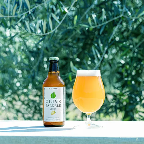 醸造は人気クラフトビール「沼津クラフト」を製造している柿田川ブリューイング株式会社(静岡県沼津市)に依頼。確かな技術で丁寧に製造していただいています。"Pale ale" is a style of beer and a craft beer that originated in the UK. This pale ale uses olives, which is rare in Japan. To bring out the rich flavor of olives, olives are used generously (25% as a secondary ingredient). Izu lemons are added as an ingredient to evoke the refreshing sea of Izu.